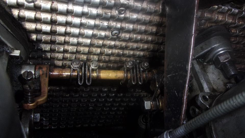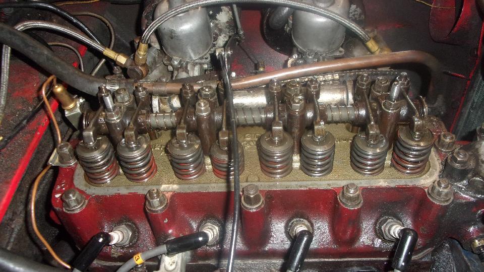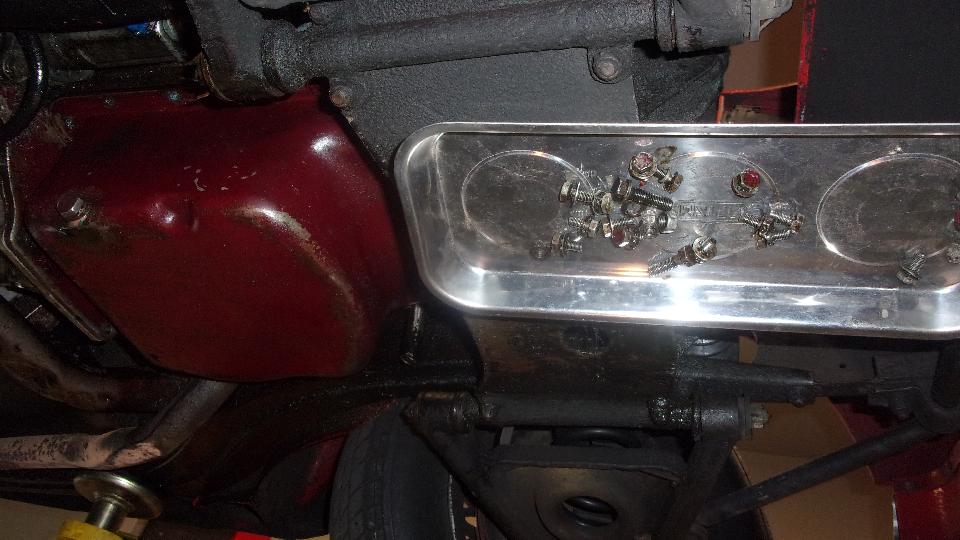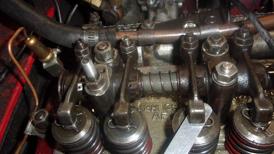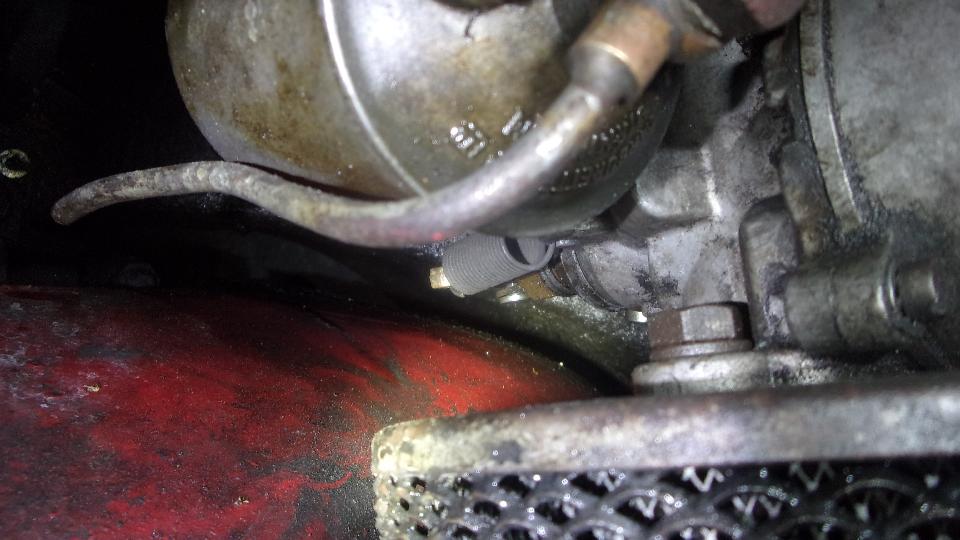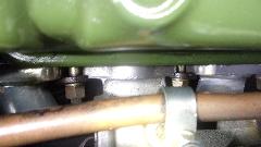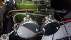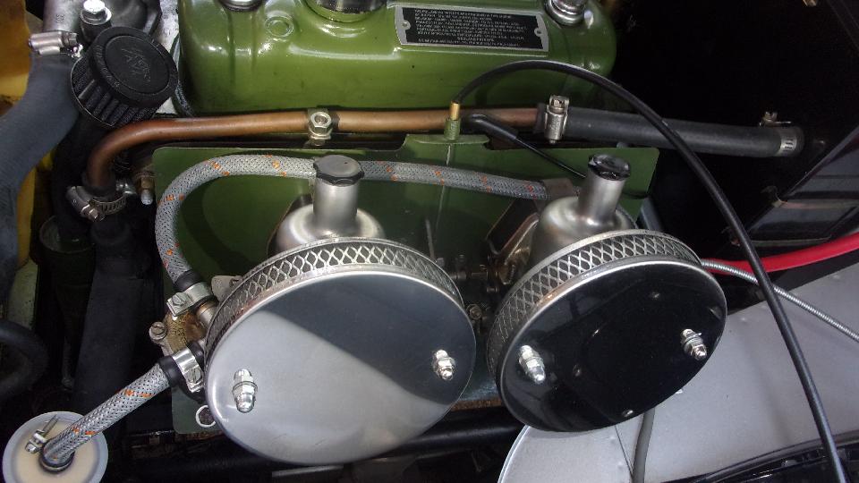 Next issue is idling a bit rough, so on to fuel mixture adjustment. Rear carb mixture nut is too tight for finger adjustment, so get out the SU wrench and have at it. Just about found the sweet spot when something odd happened, lean gently on the rear air cleaner, and the idle speed slowed down. Oh? Lift gently on the rear air cleaner, and the idle speed increased. Really.