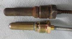 Some discussion on repair of the MGA safety gauge (specificlly the tenperature gauge) and the thermal sensor bulb. Some replacement parts have the mounting flange of the bulb being incorrect shape, having a problem sealing aginst the counterbore in the cylinder head. A second problem with the tubular male threaded compression nut being too short, so not properly compressing the bulb flange on the sealing seat.