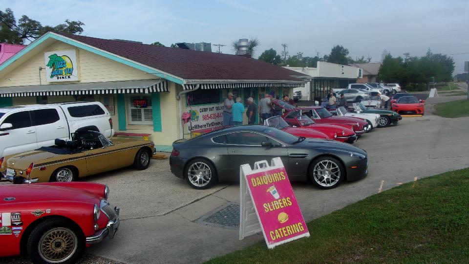 But we do know where there's another breakfast meeting. So back on I-12, point it east sailing along with the faster traffic, and an hour later we were back in Mandeville at Liz's Where Y'At Diner for Cars & Coffee with the BMCNO North Shore group, just about half hour late but plenty of time to catch breakfast. Remember this place? Nice weather, no rain, so better turn-out than two weeks ago. I think we had 22 friends for breakfast, then out to kick some tires,