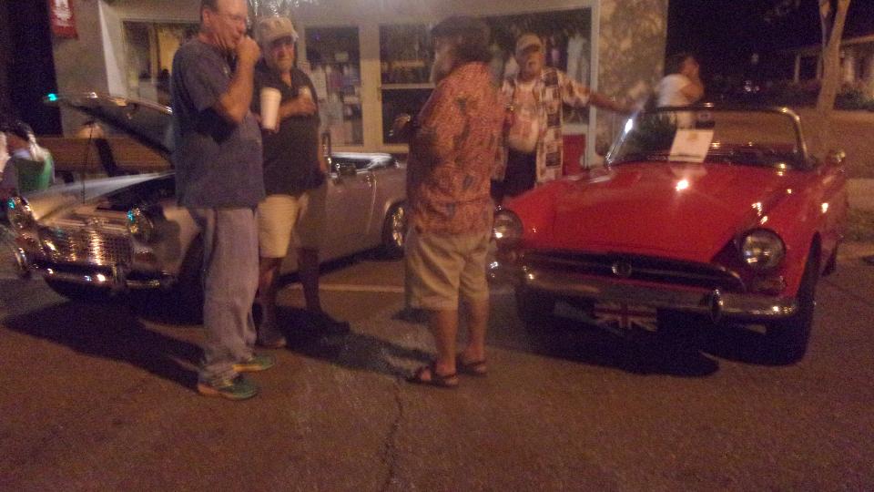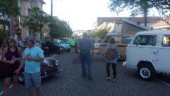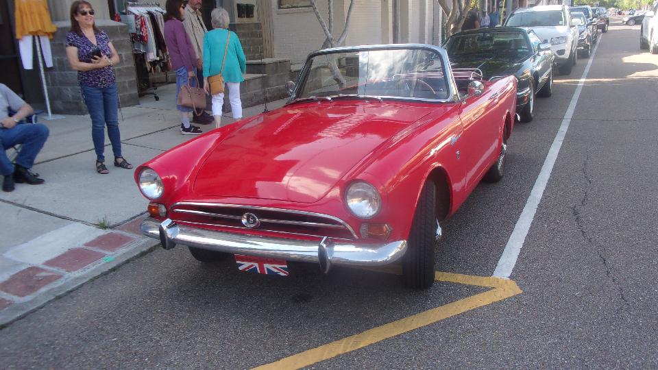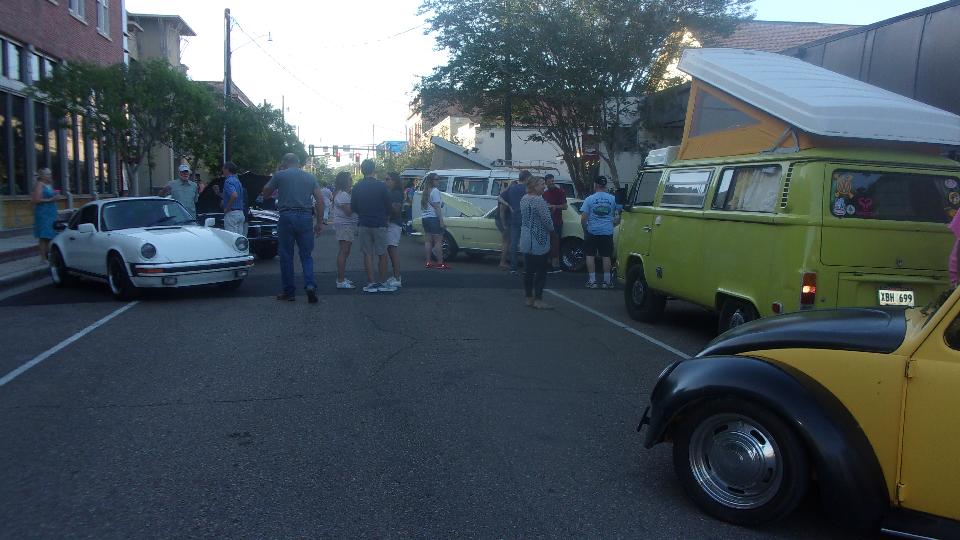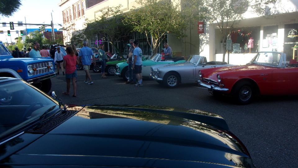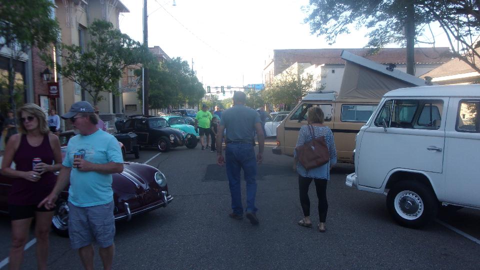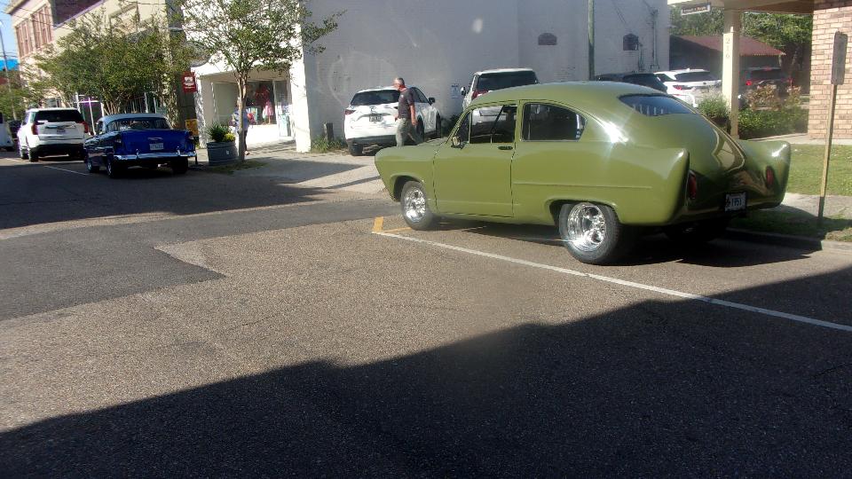 Been hanging around lower Louisiana for the past few days just to attend Final Fridays street car show in Covington, LA. (We call this Cruise Night up north). At least half a dozen cars here from British Car Club of New Orleans, mostly from the North Shore group in the immediate area). Arrival about quarter to five, parallel parking, not half the cars here yet. The Porsche was parked at end of street, the Baja Beetle behind, and the Sunbeam Alpine across the street.