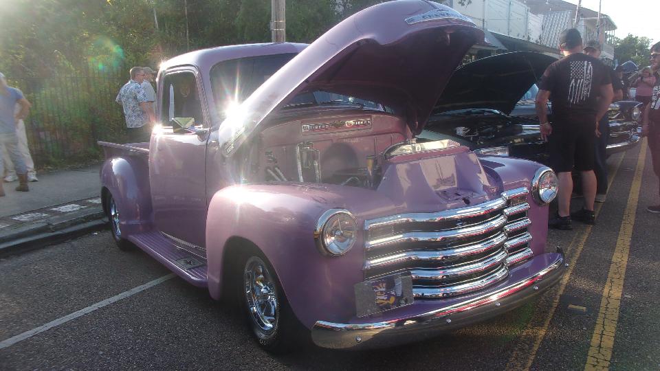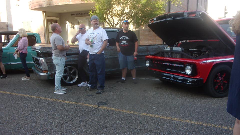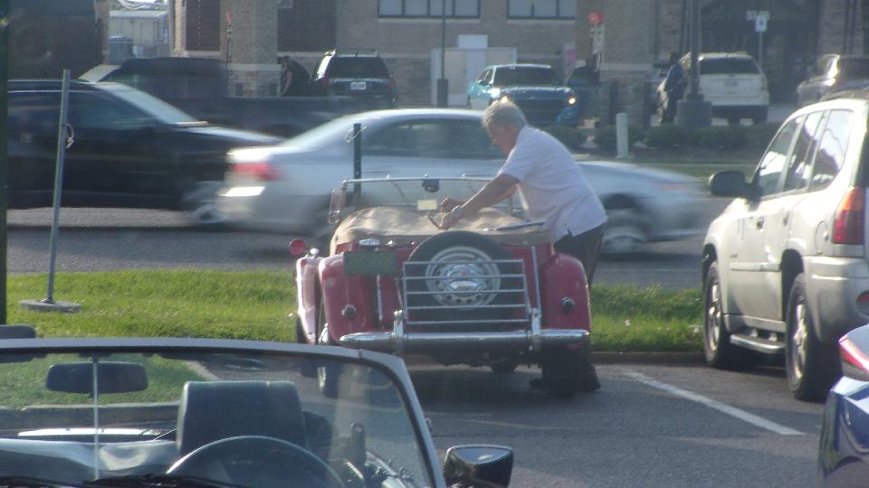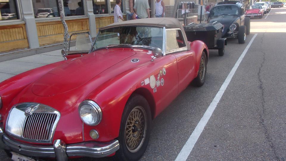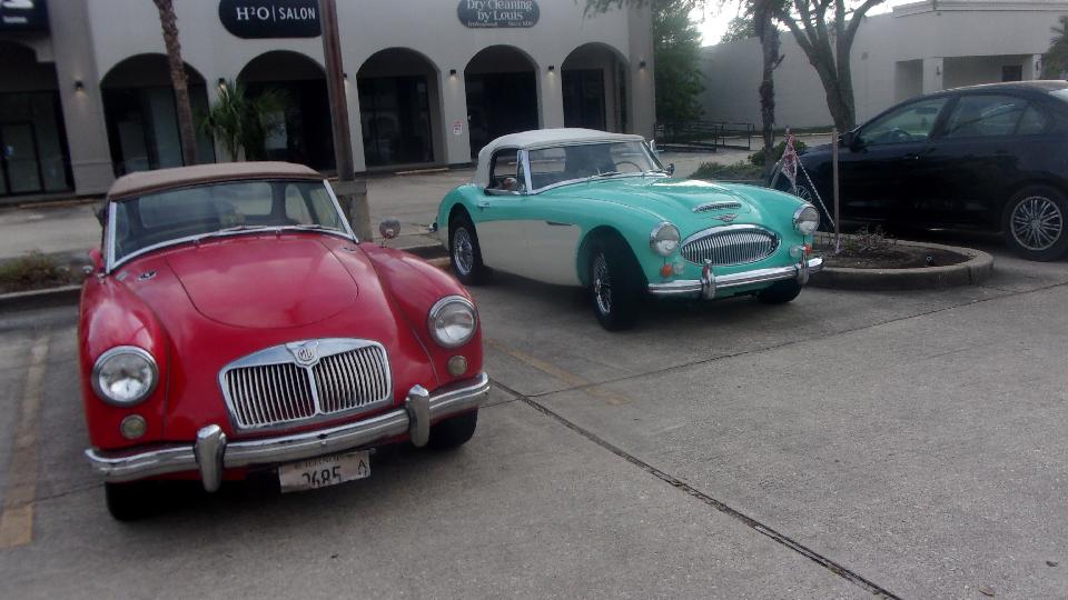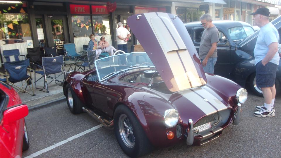 Been hanging around lower Louisiana for the past few days just to attend Final Fridays street car show in Covington, LA. (We call this Cruise Night up north). At least half a dozen cars here from British Car Club of New Orleans, mostly from the North Shore group in the immediate area). Arrival about quarter to five, parallel parking, not half the cars here yet. The Porsche was parked at end of street, the Baja Beetle behind, and the Sunbeam Alpine across the street.