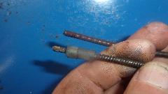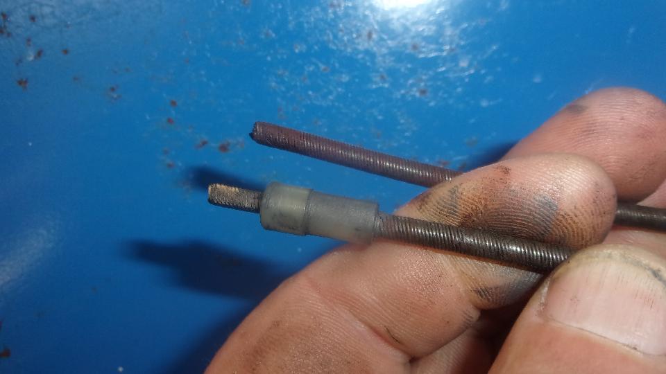cable to pull out the rest of the core wire. Then lay the two pieces of wire end to end to carefully measure overall length, so we could see about ordering a replacement part. The fun bit here is that the 5-speed gearbox is a Datsun part, and the cable is a non-standard length (not well documented). So now to grouse around to hopefully find a local speedometer shop to make up a new cable core.
