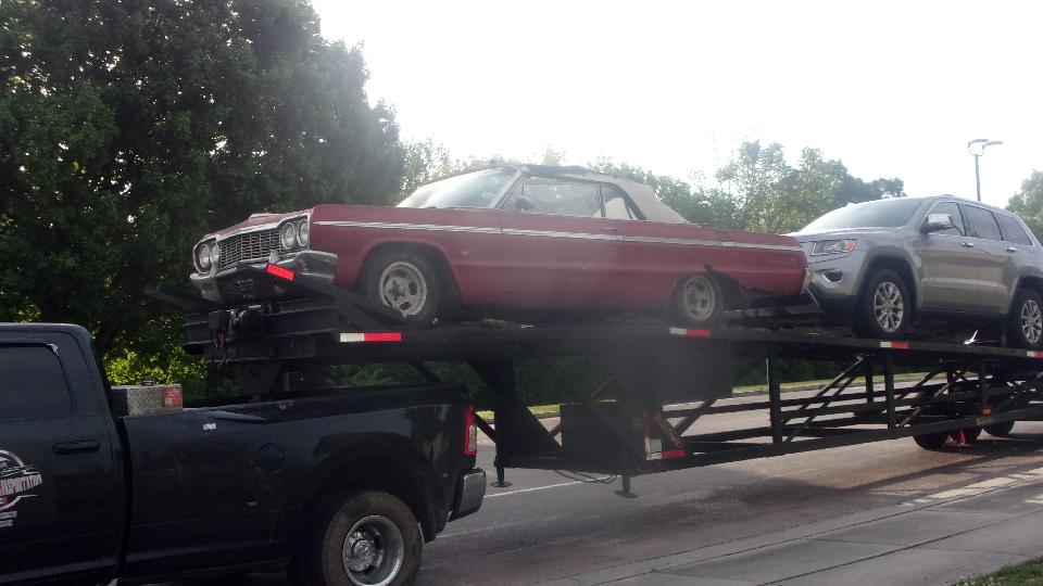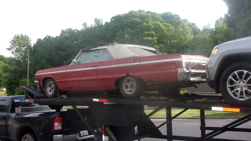 Say good morning to this 1964 Chevrolet Impala SS on the transport, found at the Tennessee Welcome Center. Long neglected, tatty and rusted, in need of a lot of TLC, hopefully on the way to a new life. A few miles farther north we were sitting in the southern limits of Chattanooga, checking email and BBS.