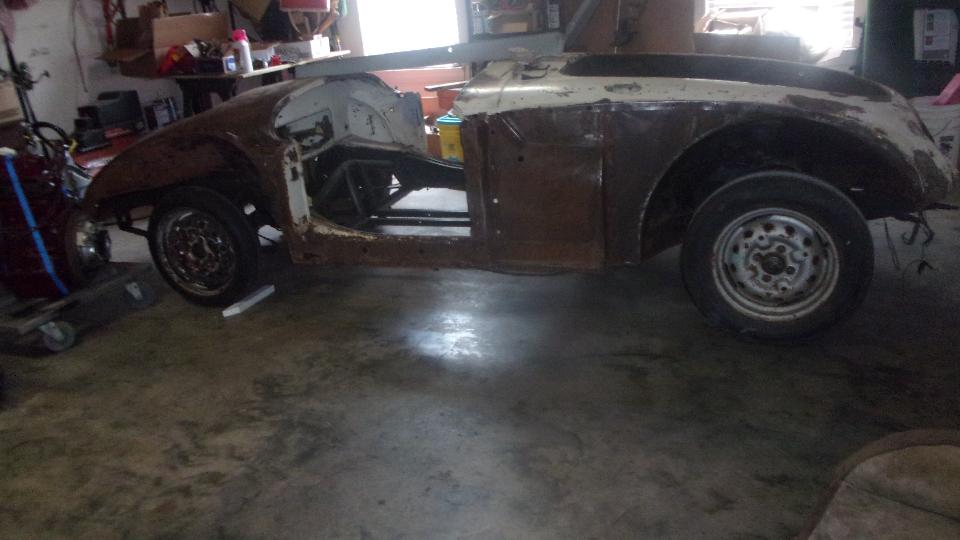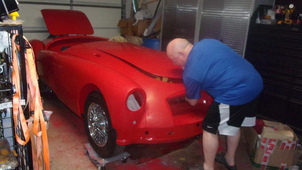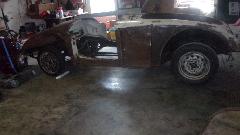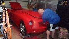 Andy has inherited his father's MGA which was purchased very early (maybe new). He got it four years ago and has been restoring it, nearing completion now. Chassis finished, body work and paint finished, body back on the chassis, just needing a little more wet sanding and buffing.