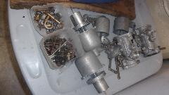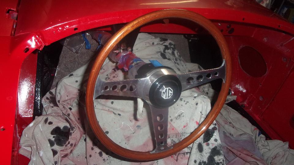 And we have ready to go carburetors, heater, inner wing vent panels (from MGA Twin Cam), and a real vintage Les Leston steering wheel (new old stock).