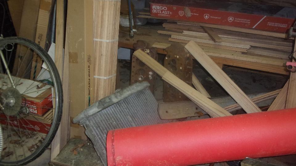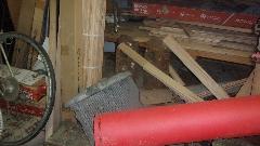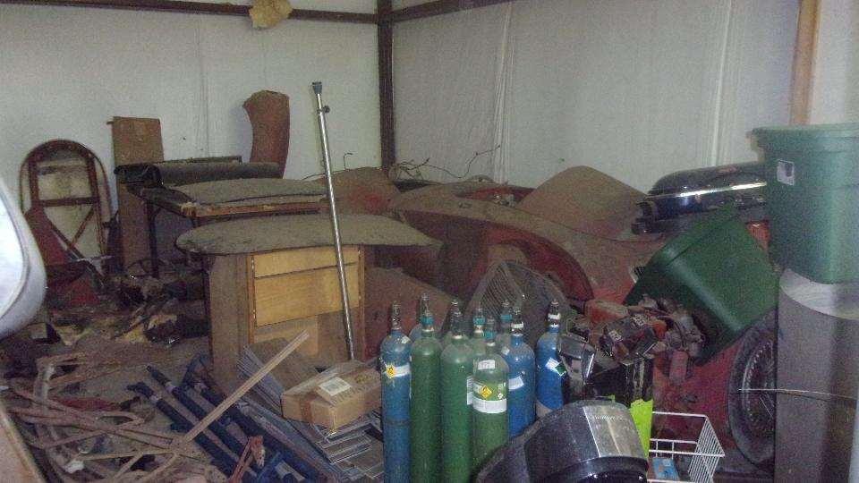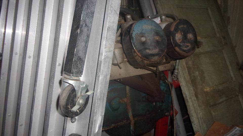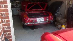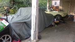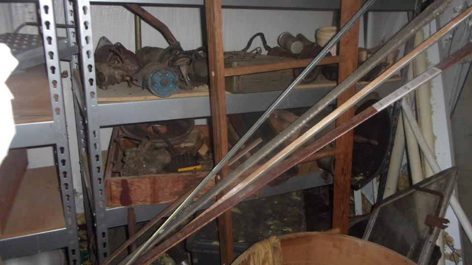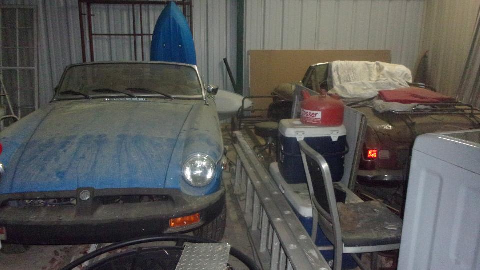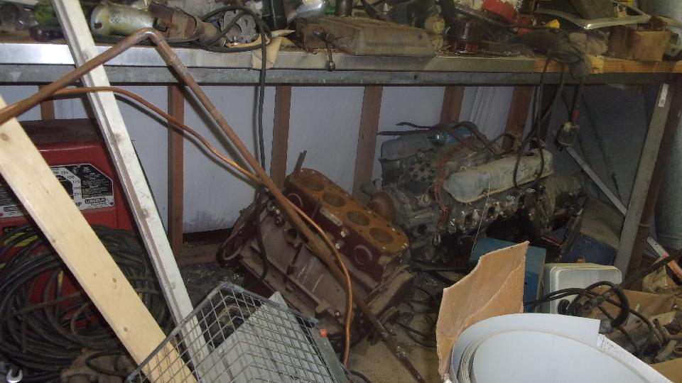 I there is a TR6 under that tarp, but we won't talk about that one. The yellow MGB has a slightly warmed over engine with Weber side draft carburetor, normally goes like scat, but currently dead due to water in the fuel at last fill-up. After some extended old-times chat and a short food run we dropped by his "shop" at another home nearby. Pictures, and more pictures. There are enough parts here to rebuild two MGA, and we know because there were two complete cars before disassembly. Don't want to dwell too much on how long these projects have been stalled, but the kids have flown the nest in the meantime.