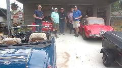 Up early for breakfast and a one hour plus trip into Texarkana, AR for a club meeting with Four States British Motor Club. This began with a summons from Bill Beecher in Texarkana, Texas, and appointment for Saturday club meeting at a Dunkin Donuts in Nash, TX. Then a late change of plans moved the meeting to back across the state line. We finally landed at club member "Boots" new home shop in Texarkana, Arkansas. Half a dozen good old boys, and a couple more later including one grandson 6-foot tall young enthusiast good to see.