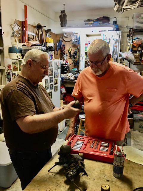By early afternoon it was tech day with Steve Schwieger, disassembling his MGA carburetors, slowly, with plenty of time for scratch and sniff explaining how everything works and fits together. He doesn't know it yet, but he is going to put them back together while I supervise and answer questions.