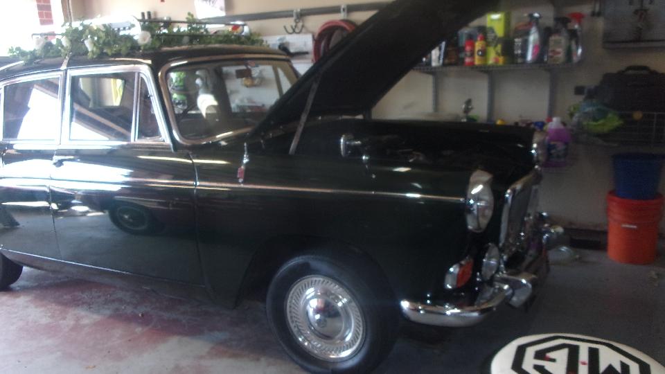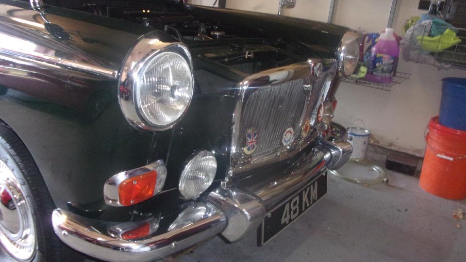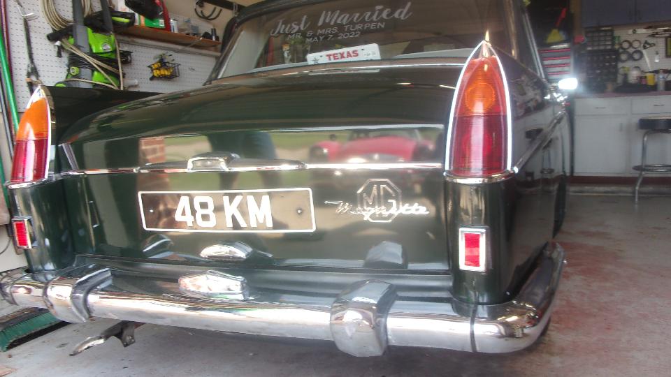 He has two nice MGB that are daily drivers of show car quality, but the prime attraction that brought us here today is his MG Magnette MK-IV (also show quality). The grille is reminiscent of an MG 1100 sport sedan, while the tail lights and fins remind me of an USA built Rambler. There have been some arguments about the MK-III and MK-IV cars having similar body shell but the MK-IV having slightly smaller fins and lamps. The MK-III had 1600 engine, while the MK-IV has 1622 engine (both with dual carburetors). The striking difference is here to see at first, with very similar fins and same lamps, but the MK-IV is actually slightly wider and longer. This car might be the only MK-IV in the USA. So naturally I was out to get lots of pictures.