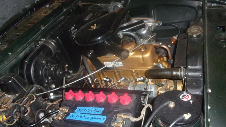 One unique feature is the "off side" only parking lamp that was required in some European regions if the car was to be parked on the street at night. The spare cylinder head is an 1800 "L" head from 1972-1974 MGB, North American spec with air injection ports.