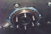 Used a new HT wire to check coil output, and got a clean spark to a head stud at least half an inch in open air. Peachy. Hold the HT wire near the rotor in the distributor while cranking, and no spark jumping, meaning the rotor is okay not leaking to ground on the shaft. Reinstall dizzy cap and all HT wires, gave it a crank, and it started right up, surprising the hell out of Navigator (and maybe me too). Kill it, put all the toys away, and get ready to rumble. Start up again, and it runs like crap with failing ignition again (or still). Bummer. Get the DVM out, pull the spark plugs, and check resistance tip to tip. Two plugs showing 6K to 8K ohms, but two showing open circuit. Damn Champion resistor plugs, RN9YC. I hate resistor plugs, and Champion may be the worst of the bunch, don't even remember why they were in there.
