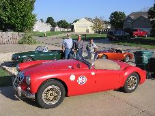 Then we were off to visit Harry Price in Rose Hill, KS. He has (and has had) various vintage British cars, including the red TR3. He gave it to his daughter as a wedding gift. Photo is from our prior visit in 2015. A few years and two kids later she gave it back. So he sold it and gave the money to his daughter. Now he is restoring another TR3.