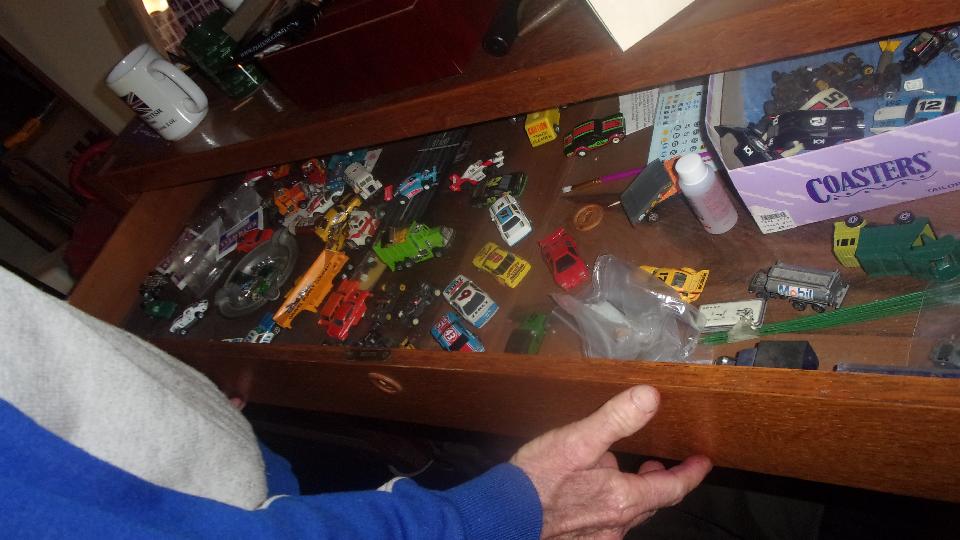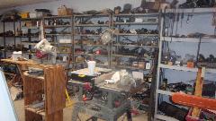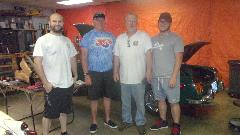 Inside the left wing of the shop is a storage and work room. We were introduced to a bit of history of the owner's prior cars (and his father's cars). And we had a friend and his son drop in to chat for a while.