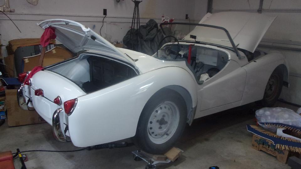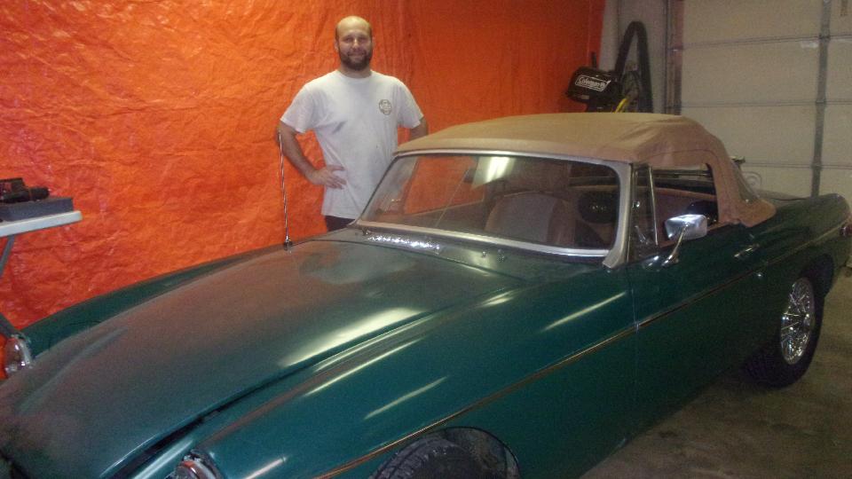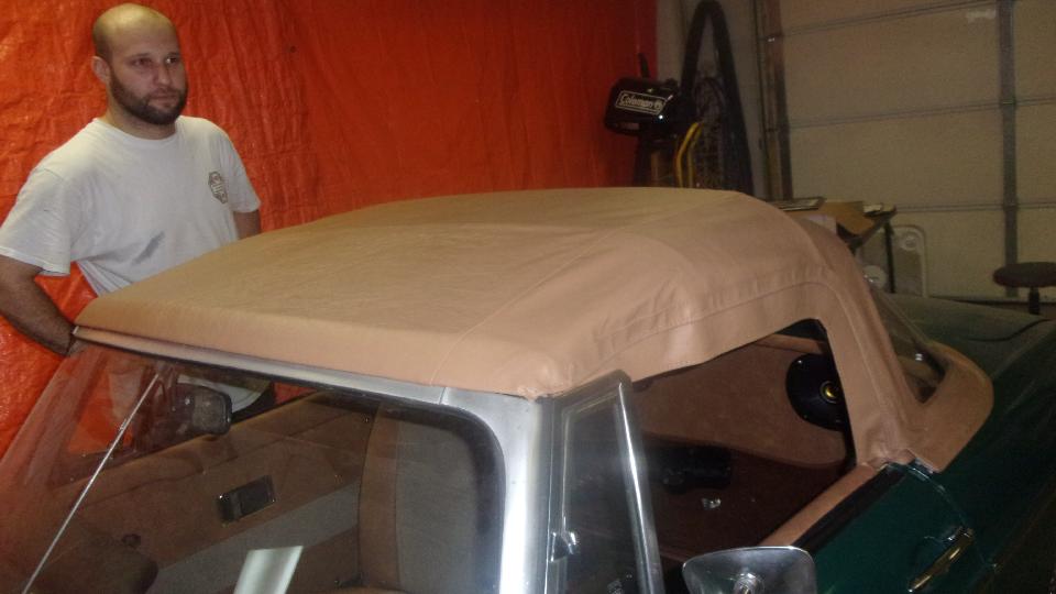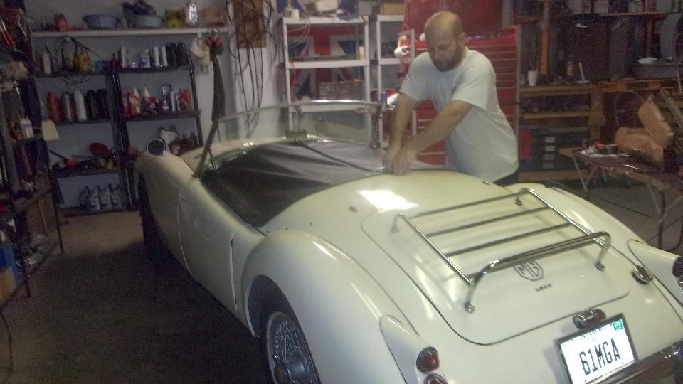 Then Michael and Ian were installing an MGB convertible top while the rest of us were chatting. I think they were finished in about an hour, making it look easy.