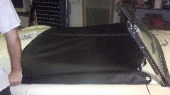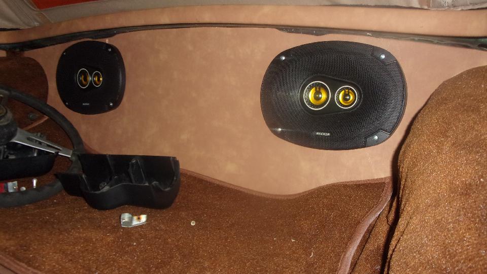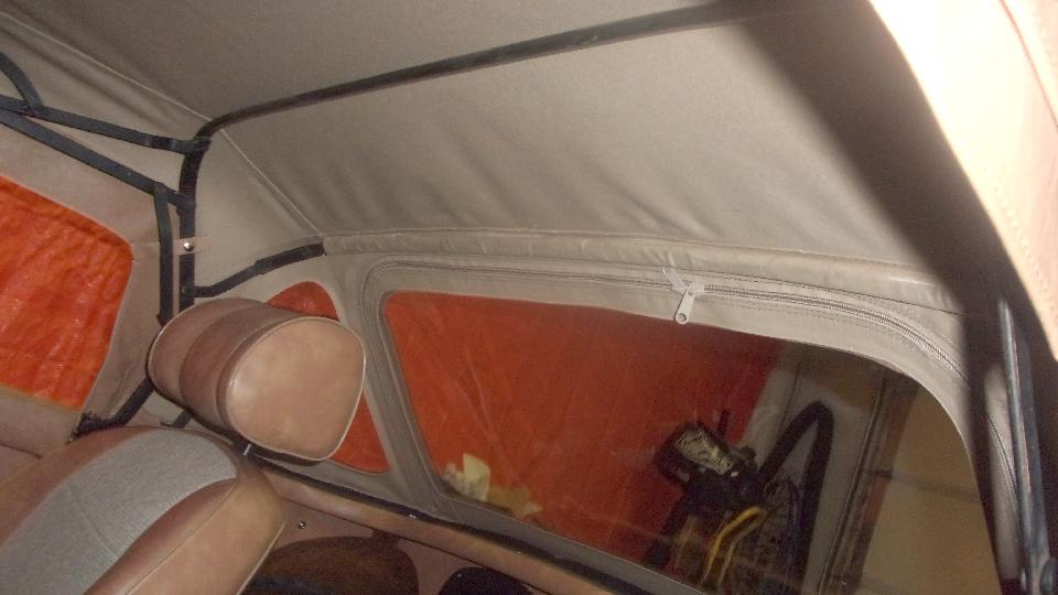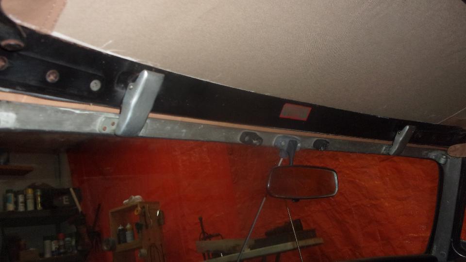 Nice interior finishing for the new top. The rear bow has a fabric wrap secured with spray-on adhesive. Nice set of radio speakers in the rear bulkhead (owner's choice).
