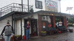 We had a little chat, then went the check out the small town for amenities in Guthrie. Within a few blocks downtown there were two cafe, 2 dinner, 2 pubs, a French bistro, a Chinese restaurant, and I quit counting. Katie's Diner was closed, as well as Boomerang Diner, so we ended up at Stables Cafe (advertising gourmet burgers).