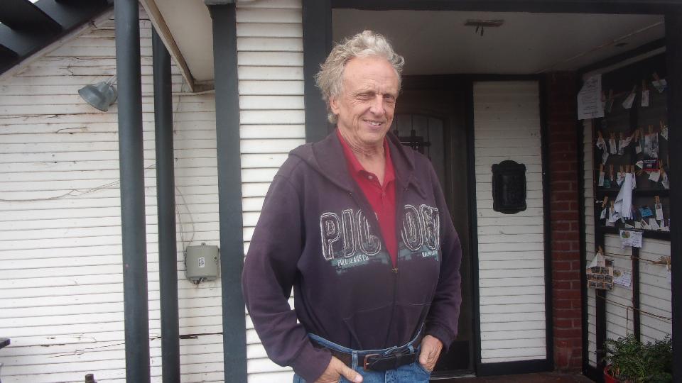 Our first intended target was Charlie Gay, but he was in southern Illinois (vacation I think). But we did get to meet his partner Scott Nielson who happens to own a 1973 MGB. The Alaska shirt was a conversation starter. The car is not here, but is at his home, reported to be in primer under restoration for, shhhhh .... (maybe a couple of decades). I recon he had more questions than I did, so chat ran for the better part of an hour before we high tailed it off to a nearby WiFi spot, for breakfast at 4-pm (told you it was a tough day).