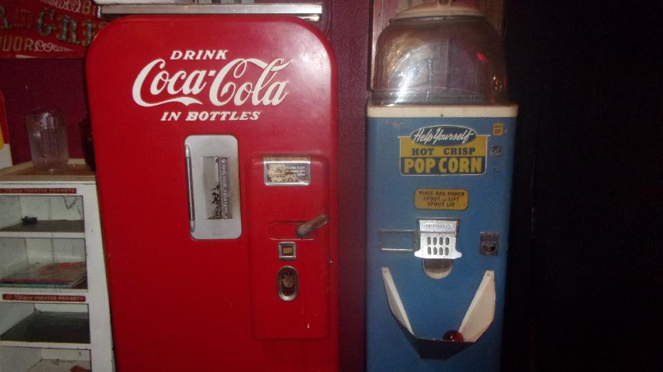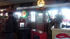 It didn't look like much in front, but different story inside. All 1950's decor with gas pumps, nickle and dime Coke machines and other collectibles all over (nice find).