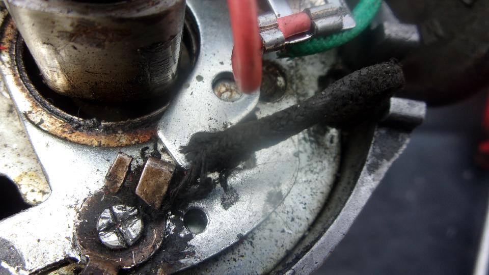 While trying to poke at wiring again, I noticed the gear reduction starter motor was wobbling around a bit with some loose screws. Likely unrelated, but that needed to be fixed anyway, so time to switch off the battery cut-off switch (Lucas original style) and R&R the starter motor. Found one loose screw and one broken screw (half of it missing). Typical Chinese merchandise with metric socket head screws, so put it back together with one tight screw and one empty hole (have to R&R it again later).