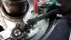 Now the moving end anchor screw was so mangled that I couldn't get a purchase on it with a screwdriver. I had several different sizes, but none would get it loose. Sitting in a truck stop without a good workshop handy, the expedient thing to do was to un-bend the crimp tabs to release the broken wire end, then cut the terminal end off the new wire, and crimp the new wire in place. Need to be very careful when you might screw up something that could disable the car. Persistence pays, and in the end it's back together and running again. Hard to believe how much grief this this was causing in the past few days. It sure feels better (with some confidence) to have it finally fixed. I probably would have found this problem earlier, if I wasn't working in the rain a few nights back.