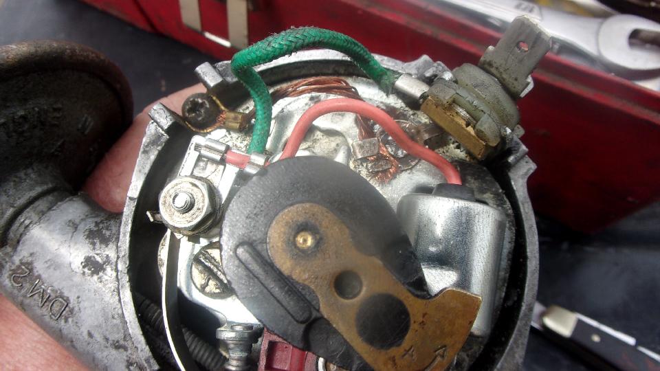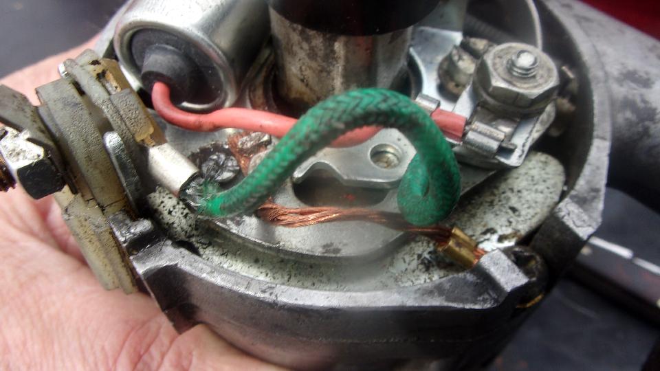 the past few days. The soft flexible grounding wire between the distributor points plate and the housing. This wire flexes with motion of the vacuum advance mechanism every time you modulate the throttle making the vacuum advance operate. When this wire is broken it results in intermittent ground connection for the contact breaker points, sometimes finding ground through moving mechanical parts, sometimes not. My inventory list says I have one of these in the Magic Trailer, last purchased in November 2020 two days after I was doing ignition work on someone's MGB. And it was a special small order for ignition parts only, which means I am very diligent about restocking important parts. So go pull the part out of the trailer to be sure.