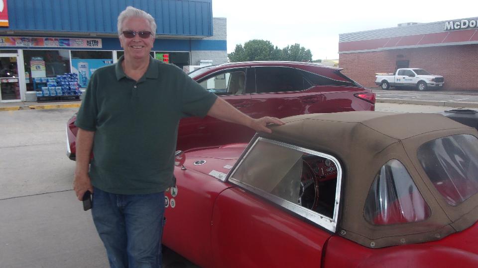 After breakfast, but before venturing out of town for our appointment, we stopped fuel. A friendly voice said, "Nice car". After half a minute of chat about what we were doing, he said, "Are you Barney"? .. Yes .. "Are you THAT Barney"? .. Yes .. "I gotta get a picture of your car". When he found out where we were going today, he said, "Tell Harry that Clean Dean says hello". .. Okay .. Apparently they did some touring together in Harry's red TR3.