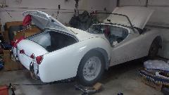 Then off to the workshop to check out his latest project, another TR3, I suppose a replacement for the red one. Chassis work and body work and paint finished, now in process of reassembly, so it is definitely going well. Various parts not yet in assembly are on the floor or on the shelves, some hanging on the walls, and I'm sure lots of spare and left over parts as well.