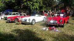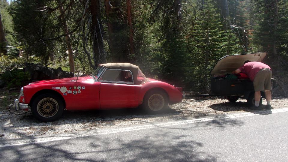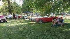 My dirty MGA with the trailer and travel stickers got a lot of attention this time. The only picture I got showing the MGA was the second one here with a bit of the car showing at top center of the picture. I spotted at least one Lotus, but must have been one or two more.