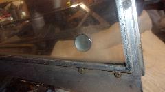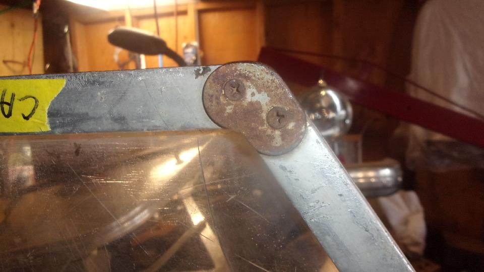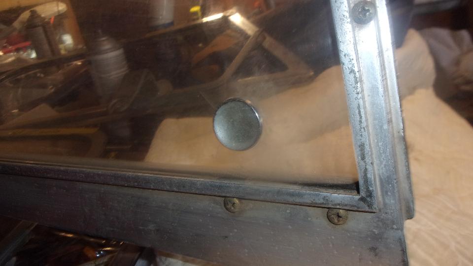 What else he has is an original pair of Weathershields alloy side curtains which the factory supplied specifically for use with the Vanden Plas aluminum hardtop. An interesting feature here is a slight outward curvature of the top and bottom frame rails to exactly match the curve in the rubber weather seal in the hardtop.