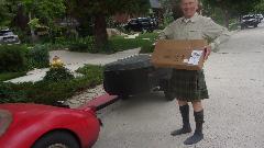Don was still searching for generator brackets, and was even offering to remove the brackets from his car for us to use for a few days. But just at that moment we got a phone call from our other friend Rob Foye to let us know that our Moss parts order had arrived, on Saturday afternoon no less. Hey, don't look good fortune in the face, so we hustled right over to pick up the package. Sure enough the new alternator brackets were here to replace the broken ones. We took enough time to sort and collate and stow a dozen new parts to be organized in the trailer where we could find the stuff when it may be needed later. Then off for late lunch and evening WiFi session.