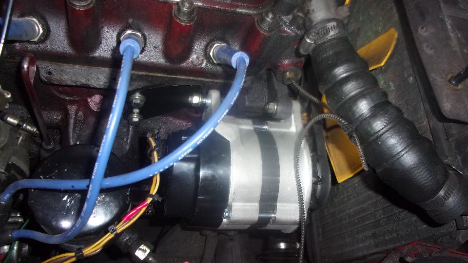 In the process I noticed the new rear bracket was formed with a zero radius inside corner, a definite stress riser point (and we had two of them). Then of course the damned alternator was defunct (again), so we installede the spare out of the trailer. Then we ran it back up the hill after midnight.