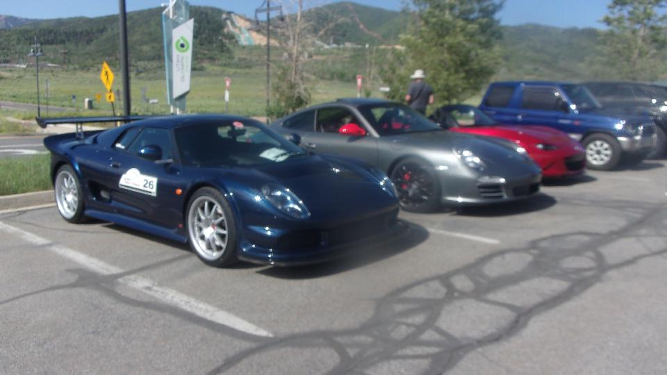 Good morning. It took a while to sink in that Park City Welcome Center is actually in Kimball Junction, Utah, while Park City is just a stone's throw around the corner of the mountain. This place was location for the 2002 Winter Olympics. We arrived about half hour early, and not obvious yet where the cars should be parked, so we went to Hugo Coffee for breakfast (actually inside of the welcome center). Then someone said the cars were parked half a block down the hill, so I rolled the car down that direction and found a place to park it in the crowd (while navigator was hanging out at the welcome center with their wonderful WiFi). Just a few pictures here, but you can click to see a larger collection of pictures on a supplemental photos and notes page.
