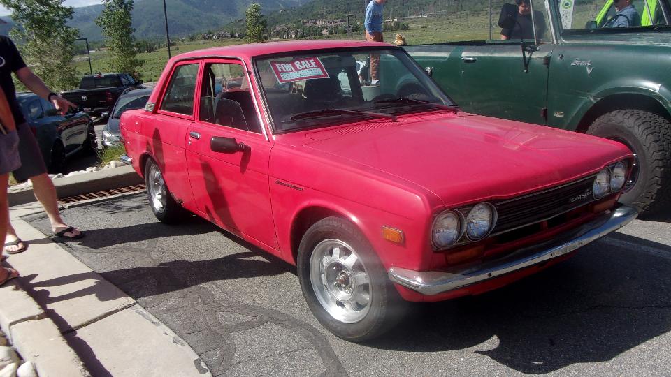 As the show was breaking up I got to chat with a fellow who has a Datsun 510 "Bluebird" as they were known in Japan. This one actually had the Bluebird emblem on the side, which I had never seen before. The car was for sale, but I'm not buying. We did get to chat for a while about the heritage relationship between Datsun and MG (Austin) cars. This one has a 1500 engine with overhead cam, 96-HP at 5600 RPM, not bad.