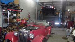Wide assortment of vintage European cars here (including some British cars). Not sure what the Delorean needs, but the TF is getting an engine rebuild. Couple Land Rovers out back along with the big Jaguar, which Ii think is gradually being restored.