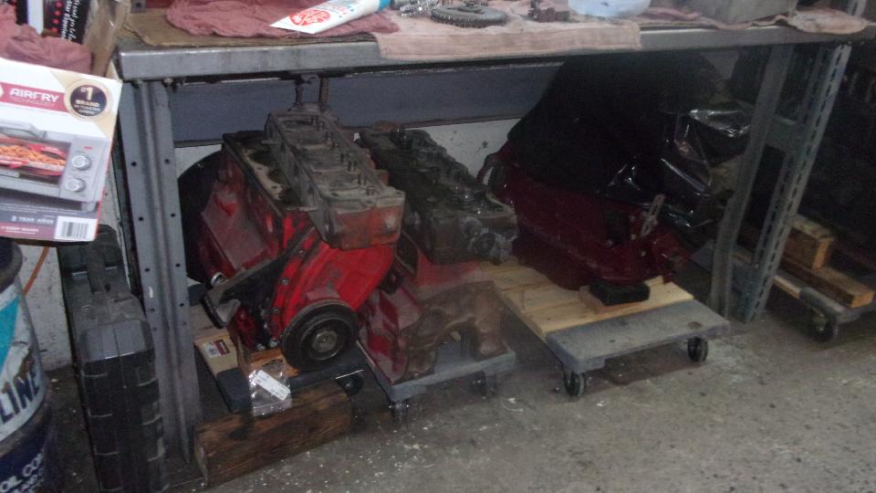 The Mercedes Super Light with pagoda roof needs new fuel injectors, but the currently available parts are "oriental" and are not calibrated for correct fuel flow, so that one is just sitting (indefinitely). The next two pictures are a Land Rover diesel engine, just about ready to reinstall.