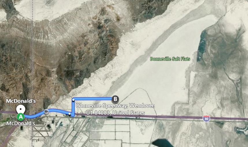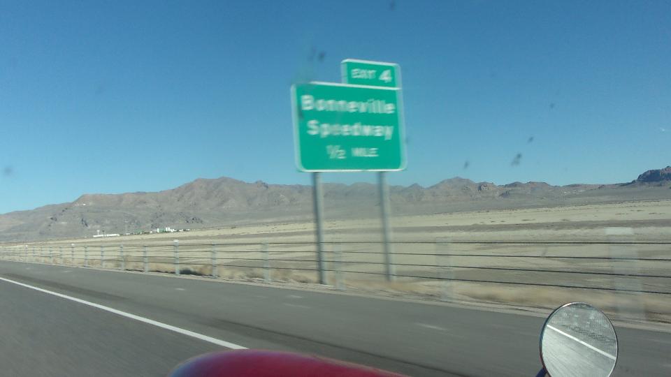 Early afternoon, we were going to be heading roughly northeast, and wanted the sun to be over shoulder for best visibility. Back east on I-80, exit 1 to exit 4. Then north 1.5 miles, welcome to public lands, and east about 2.5 miles on Bonneville Speedway Road (sure, what else should they call it?).