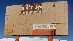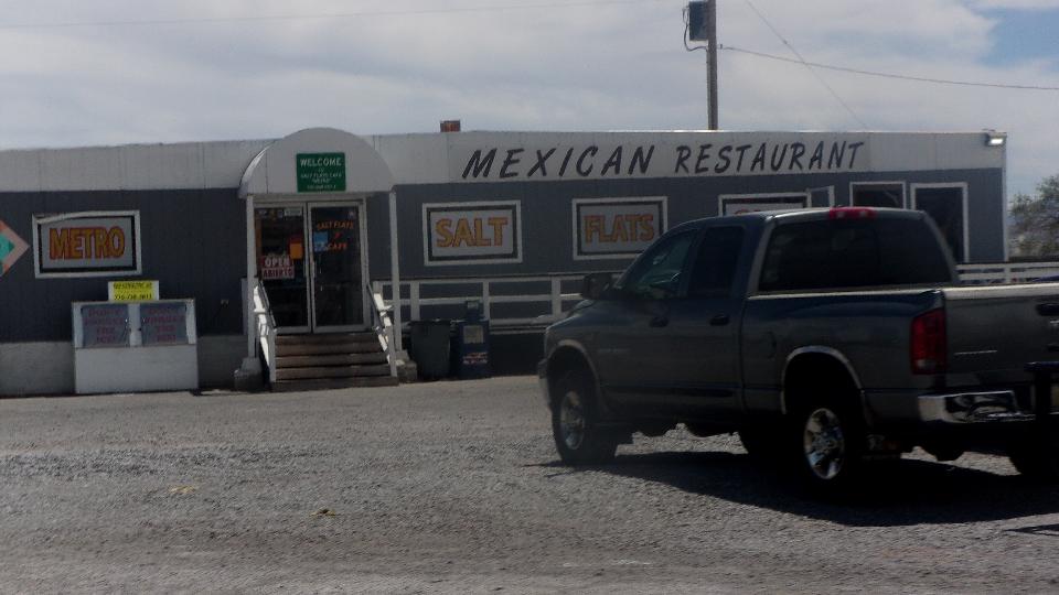 We stayed in Wendover, UT last night, away from the casinos. Took a very short drive this morning very close to the state line to find the current status of the Bonneville Speedway Museum. Yeah, well, that's it, the boarded over billboard with few pieces missing. The building is currently an auto parts store. Checking the net, it seems the has-been museum closed about 2005. Owner of the parts store has been petitioning the city of Wendover to reopen the Museum since at least 2011. They also seem to be running a funds drive (more than ten years now?) but not getting it reopened yet. Thought we would take a little sniff at the local salt before breakfast. Don't get serious yet, it's just the far end of a parking loy on the edge of town.