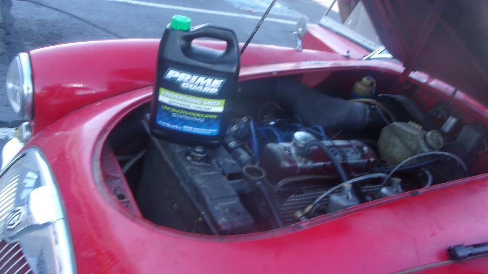 Then we were off to the nearest Walmart Superstore to get the oil and filter changed in the MGA (right on schedule this time). we also jacked it up right there in the Walmart car park to give it a lube job, as that hadn't been done since second oil change back, more than 8000 miles (kick me). Found a missing grease nipple on the parking brake cable (unscrewed and fell out I guess), so didn't get to grease it this time, but make a note to install another Zerk fitting before doing it again. Oh yeah, also time to change oil in the gearbox and differential over 12,000 miles now, so need to do that at earliest convenience.