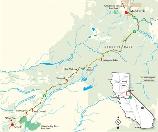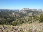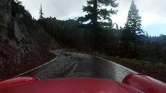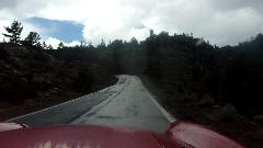 Found small space to get off the road, and killed the engine. Grab some tools, pull the spark plugs, and do a compression test. Low compression, but not terminally low, should be good enough to run. Sit on a rock and clean the fouled spark plugs with lacquer thinner and a stiff brass bristle brush. Spin the engine over to assure no excess fuel or oil in the cylinders, and reinstall the plugs. Adjust both carburetors full lean (should have done that this morning). Pack away the toys and button up the car, it was do or die time. Pictures are the hill we came up, where we had to stop for maintenance, and the hill ahead of us we had to climb out.