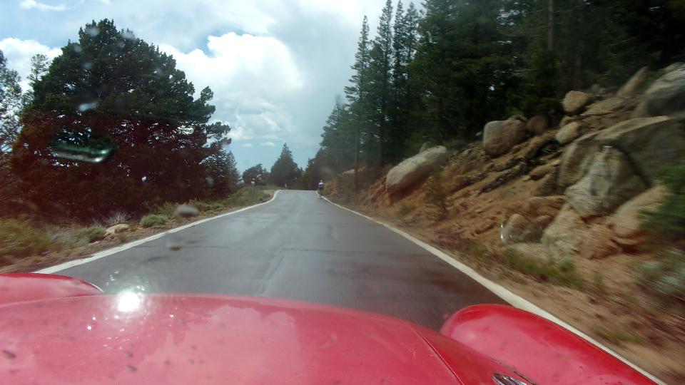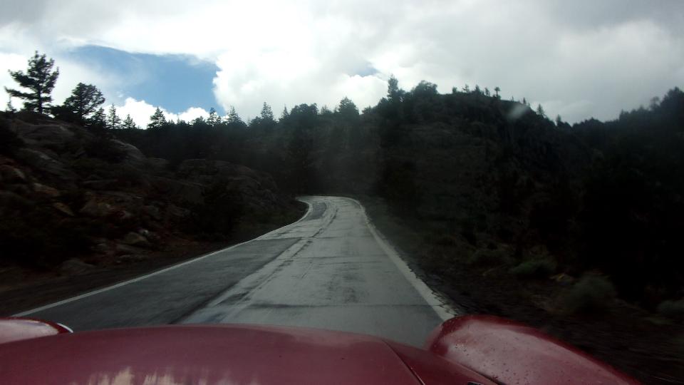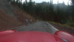 gear, mostly 2nd gear, using brakes a fair amount. Unfortunately engine braking was fouling the plugs a LOT, so keep pedaling the throttle to clear it out. Then we turned a very tight switchback to go back uphill, bad news. Fouled plugs had us running on 2-cylinders, and as it slowed down on a steep upgrade the torque disappeared, and we were definitely not going to make it.