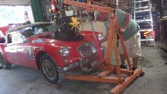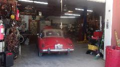 Then we were off to visit our new friend Don Kent with the recently restored MGA 1600 (and Vanden Plas hardtop). He thought he might have some spare generator brackets that might help us out for a few days. We dropped in to his rented work space at a marina boat yard. Space was 12x40 feet, and he has a low-rise floor lift and plenty of tools and bench space in the back. The BIG box is, believe ir or not, another Vanden Plas aluminum hardtop. just a slightly tattered bare shell this time, begging for restoration.