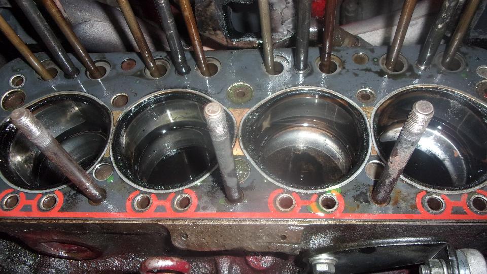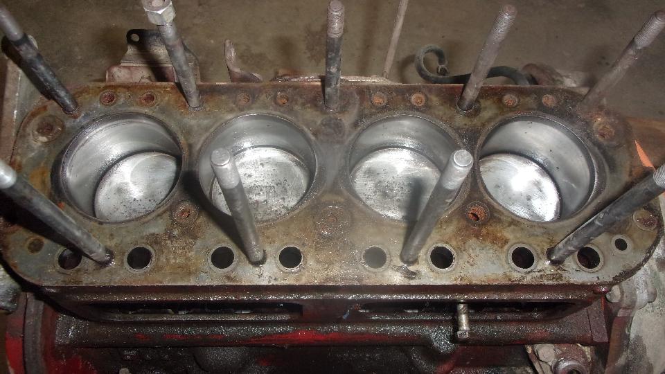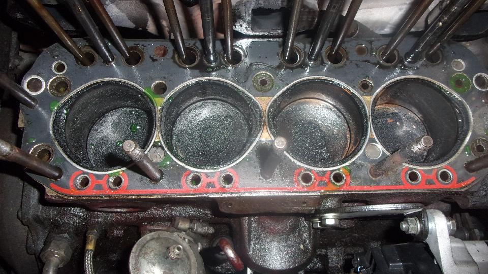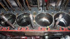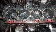 doesn't mean all is well. Put fingers on top of #2 or #3 piston, and it can be moved laterally in the bore some obvious amount, making a clicking noise in the process (not quite so bad for #1 and #4). That is, worn cylinder bore and possible piston slap when running, most likely the cause of excessive oil consumption (and carbon fouling). So bite the bullet and admit that it needs a rebore, or sleeves and rebore. Hard to complain after 230,000 miles on this HARD working engine since last rebore in August 2014. So the head and block need to spend some quality time in a machine shop. So what to do in the meantime?