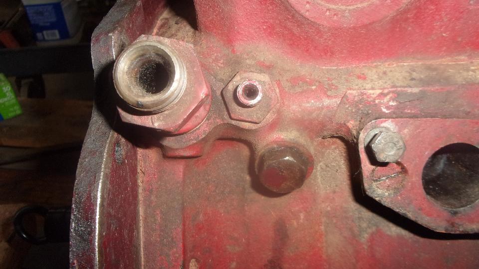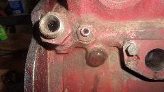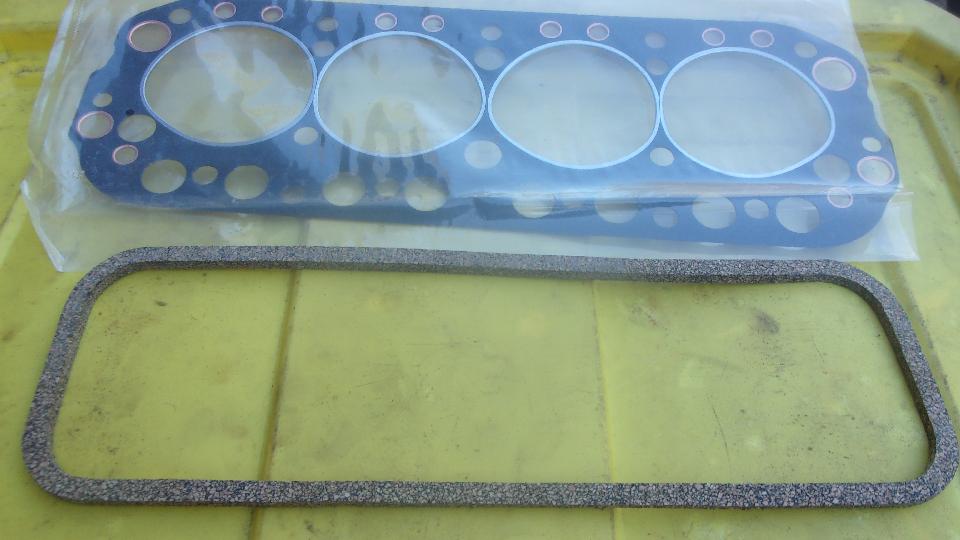 Time to get the head back on the new engine. Remove the block water drain valve, and put in a plug (borrowed for opposite side of the engine because that one has a short thread). Give this original drain cock to Stu, because I don't think he has ever seen one that actually works. Then move the (longer) oil drain plug to opposite side of engine to replace the one I just borrowed. To finish I want to install a magnetic oil drain plug. The Magic Trailer just contributed three copper sealing washers, a head gasket, valve cover gasket, new valve cover mounting hardware (grommets, cup washers, spacer washers, cap nuts), 11 each thick steel washers and tall hex nuts for the cylinder head bolts. Also a lock plate for the rear rocker pedestal set screw, and two of the four rocker studs (had to borrow two from another engine temporarily).