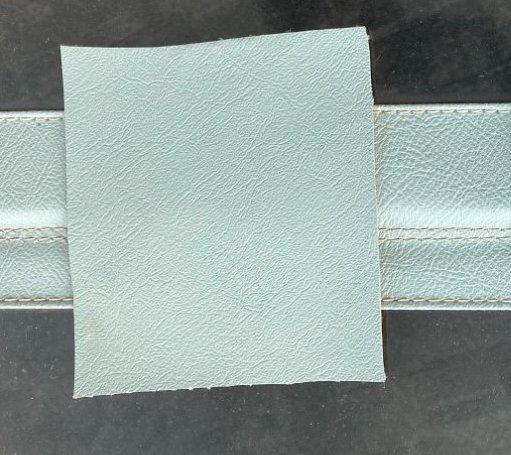 We have finally found a good color sample for The Elusive Ice Blue Vinyl Top for MGA side curtains and tonneau cover. Bob West in UK has had some vinyl paint made up to match the original, and Mark Wellard in Australia sent along a color sample.