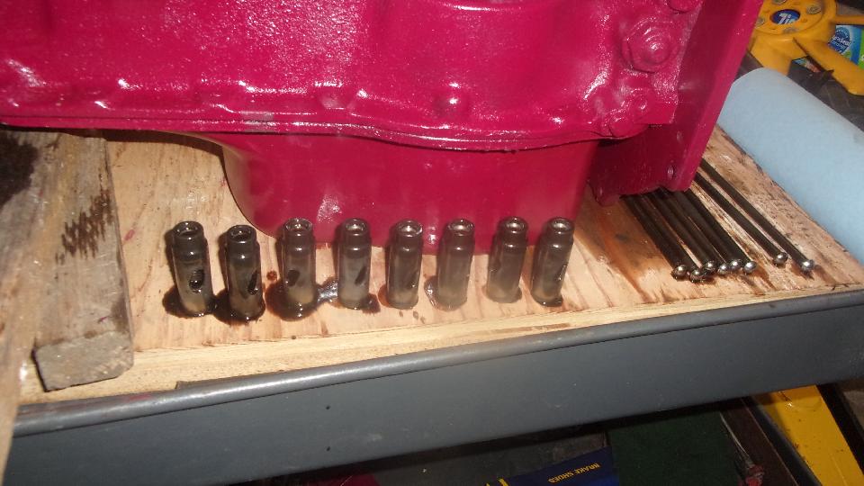 Remove pushrods and tappets from old engine, and set them in order near new engine. Pull cam from old engine, and install in new engine.
