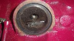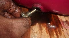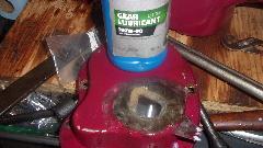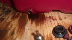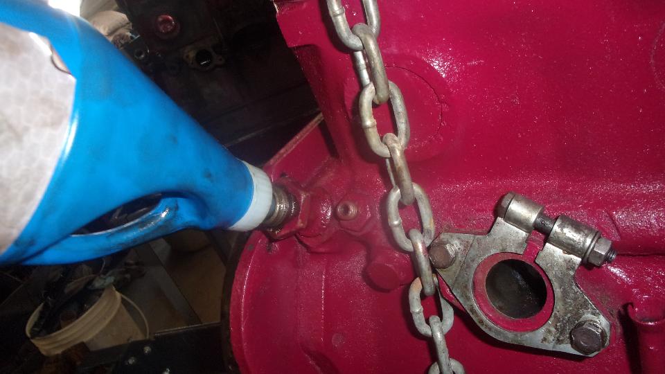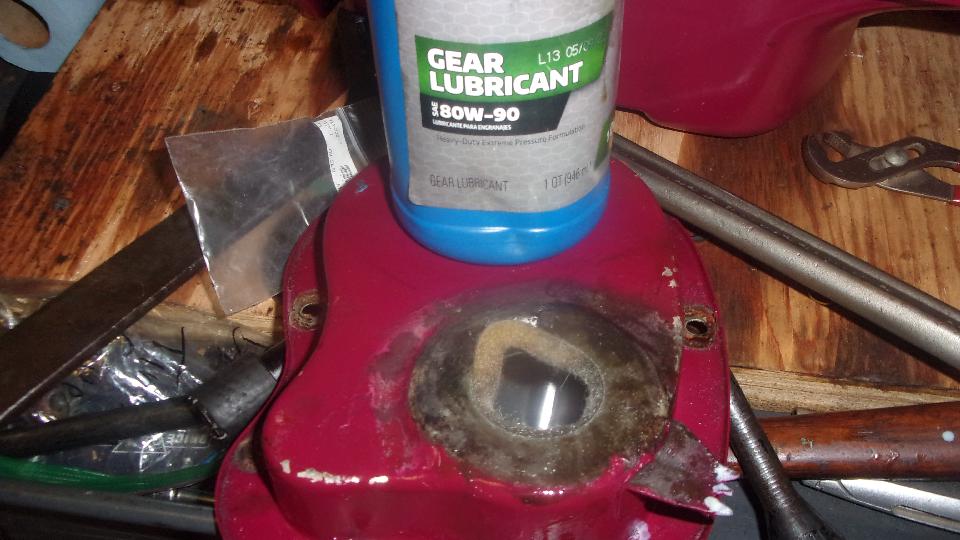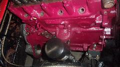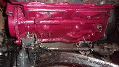Then I jacked up the tail end to change oil in the rear axle and gearbox (only a couple thousand miles overdue). Connected oil cooler hoses and oil signal hose, installed the valve cover and added engine oil. As the engine paint dries and fades darker, Cranberry doesn't look too bad. Beginning to feel like nearly finished (like 10-pm). After email questions and BBS monitoring, posting these photos and notes, nearly 3-am again (same as last night).