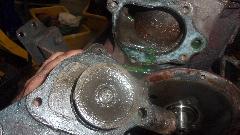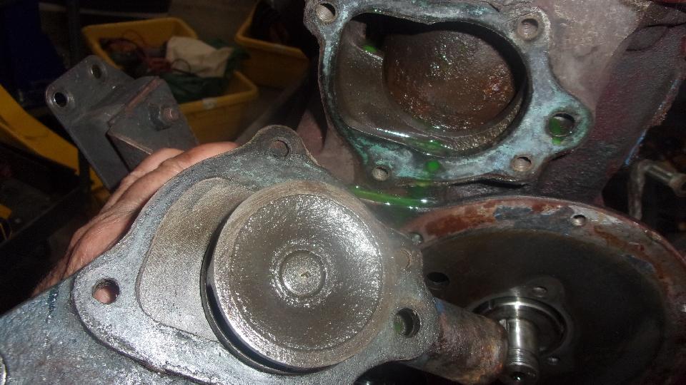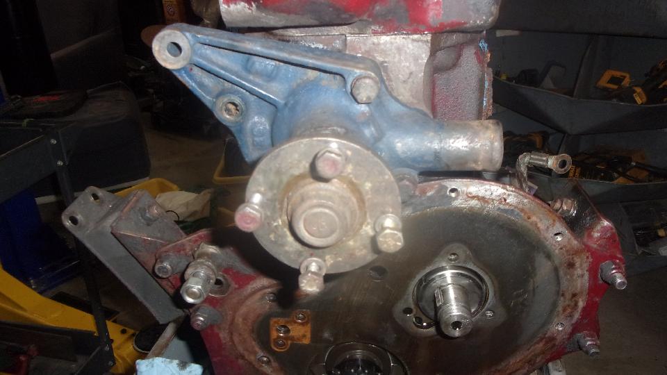 Finally grab the good cast iron water pump from the old engine to install on the new engine (after we ditched the