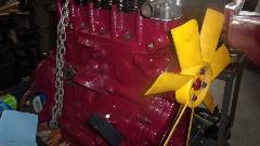 Water pump pulley painted and installed along with the fan and two new engine mounts.