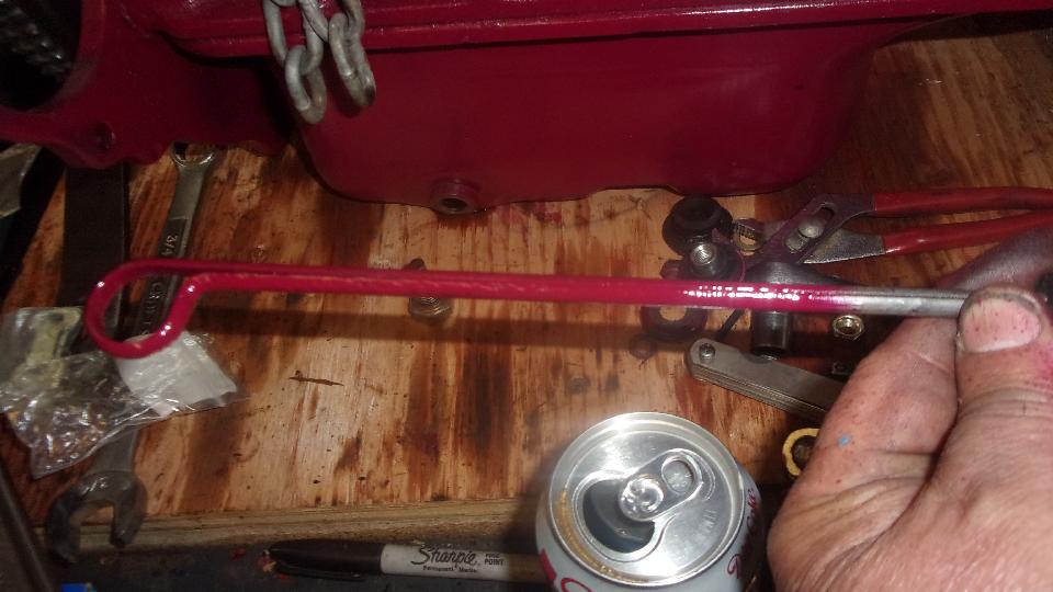 When the starter and manifolds were installed, we re-connected the battery cable and cranked the engine over to bring up oil pressure (so far so good). Then took the opportunity to do a compression test, which I would normally not do at this time, except this is a touched up used engine with some mix and match parts. First cylinder read 150-psi, a bit of surprise, as I have never had a stock engine with pressure that high. Scratching my head as I recall from a few days past the pistons in this engine seemed to have notably shallow dish, not flat tops but maybe less dish than normal. One cylinder read very low and chuffed when cranking. That turned out to be a misadjusted valve that was not closing all the way, an easy fix. No.2 cylinder was reading under 100-psi and also chuffing some. All valve clearances checking out okay, I was of course somewhat concerned. I tapped on the output end of the rocker arm to exercise the valve a bit pop open and snap shut), and compression improved to 110. Navigator said, "Tap it some more", so I did. Eventually we got compression up to 132-psi on No.2 when the others were all 150. Still chuffing a little bit, but certainly good enough to run. Concerned about finishing this today, we decided to leave it as is and check it again after it would be running.
