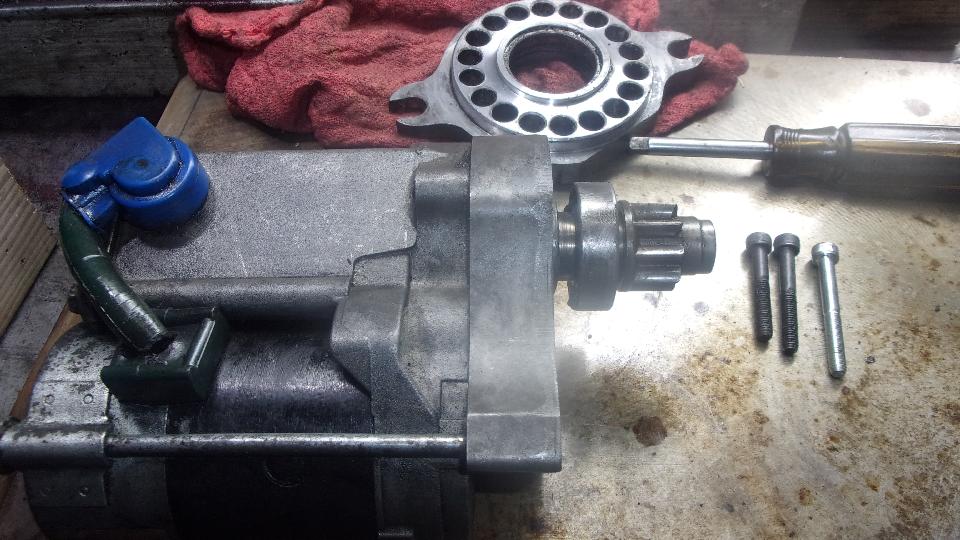 One early task today was to repair (replace) a broken bolt in the gear reduction starter motor. Broken for a while, we even had it out for a look some time ago but didn't have the right size screw. Now it's out again, so time to get serious and fix it. Kind of surprising how far it had to be disassembled to get to these screws.